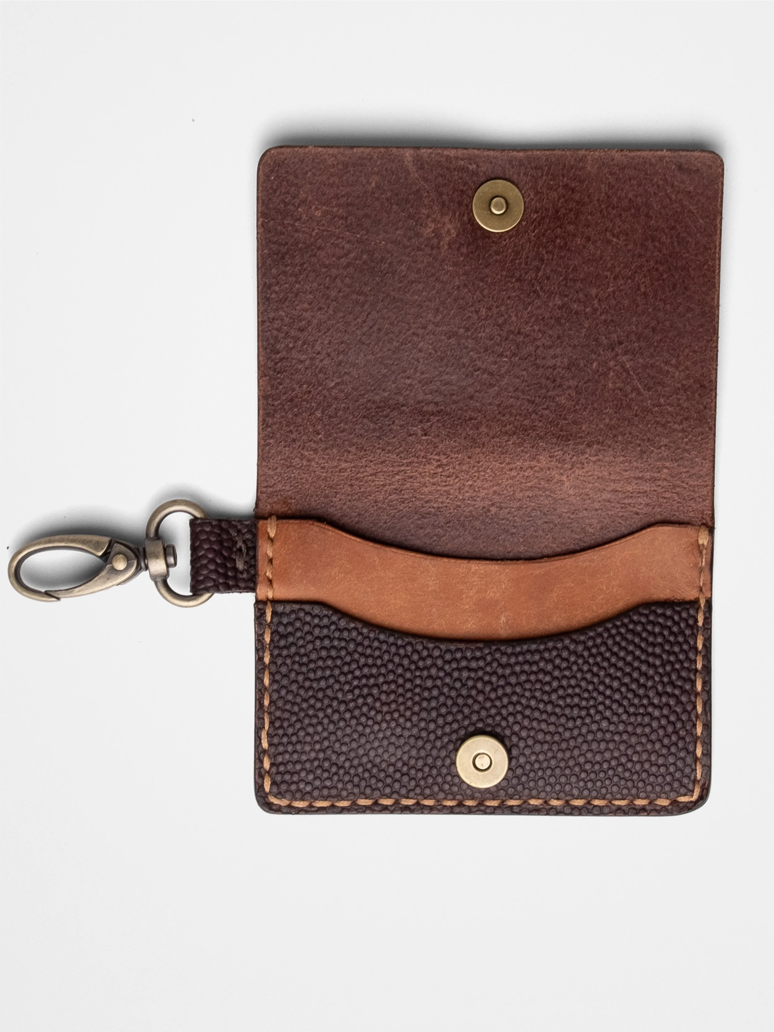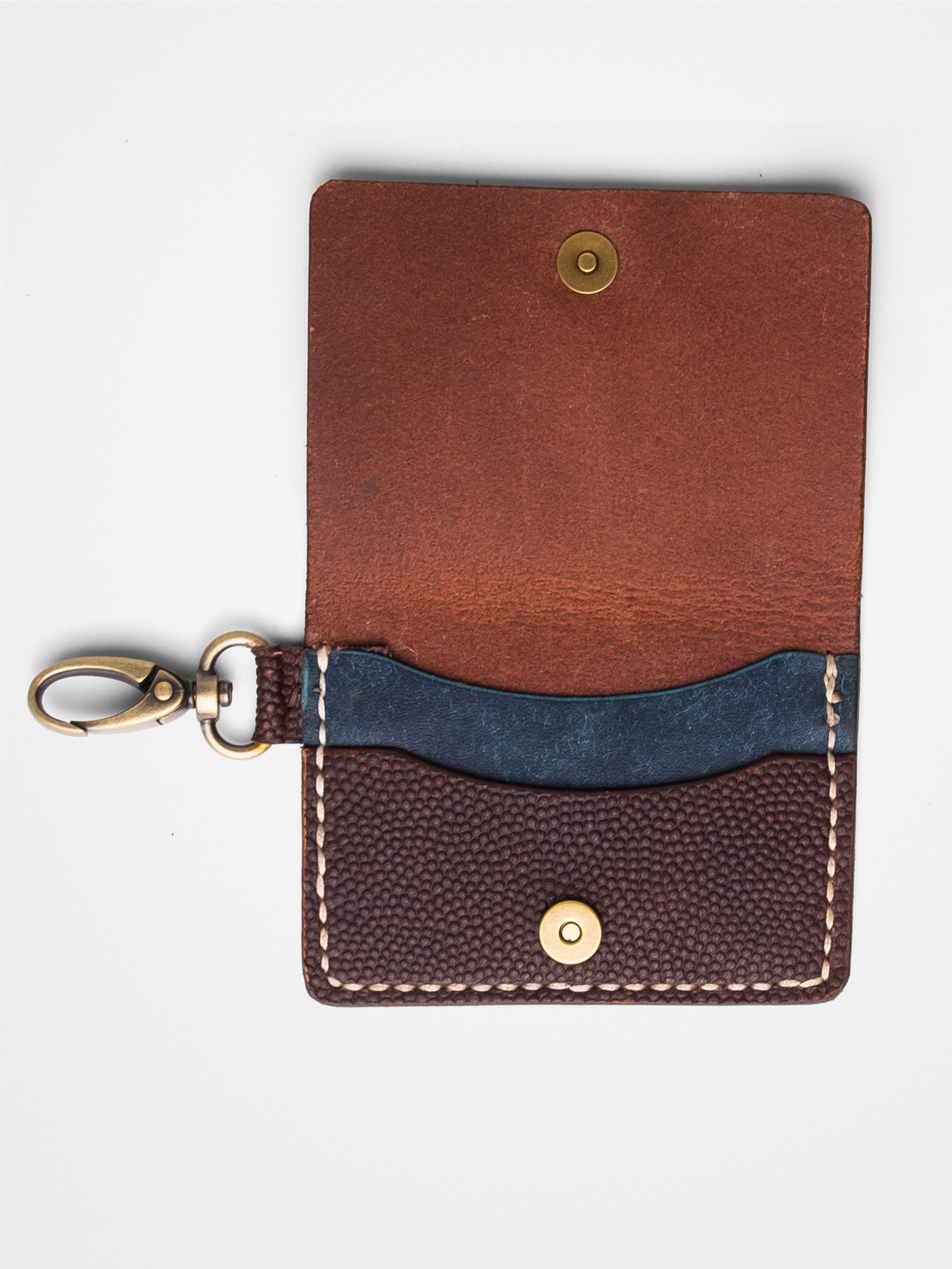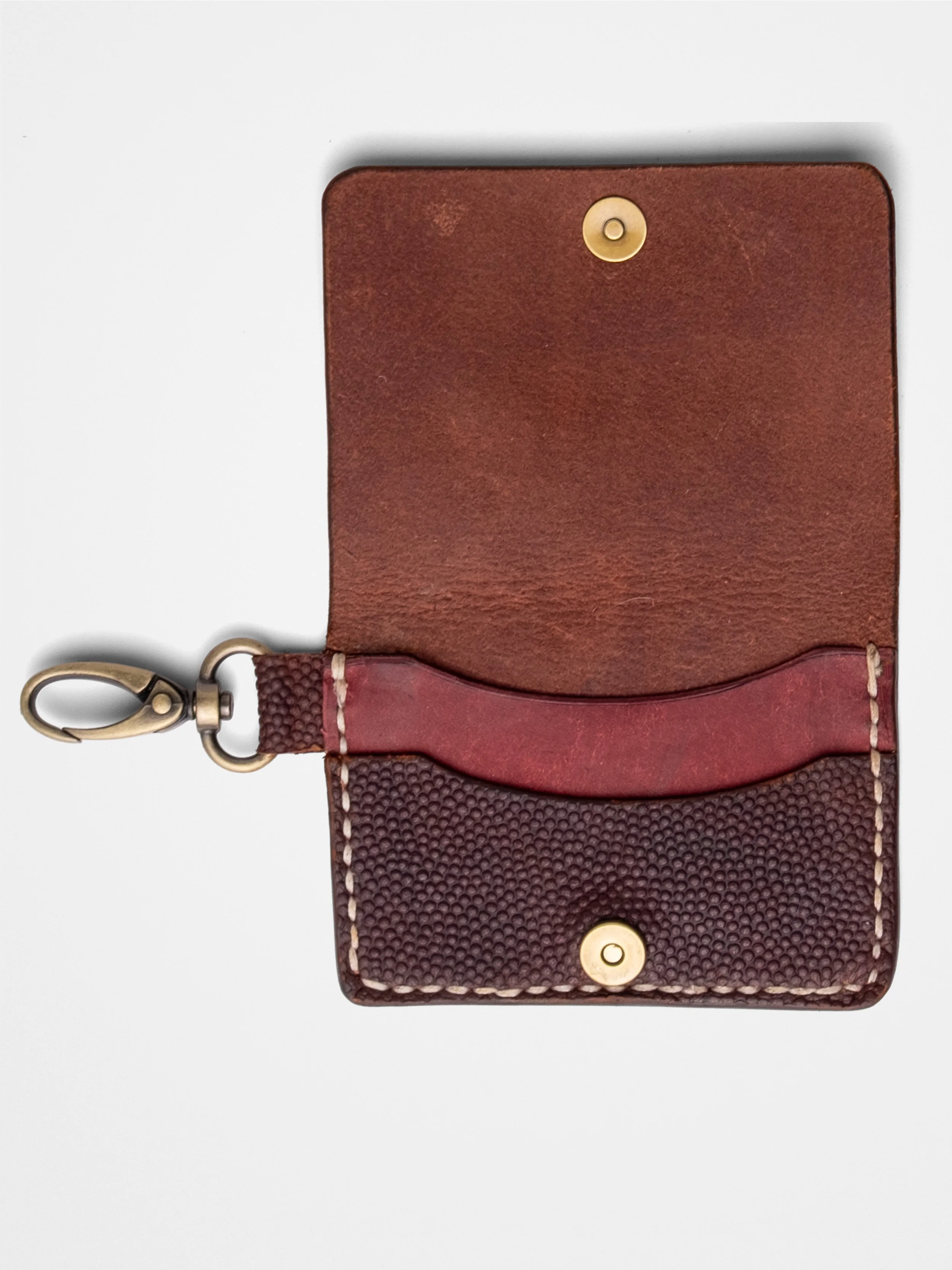 Handmade from heavyweight olive green and whiskey brown leather, it’s stitched by hand—no machines, no shortcuts. Two angled card slots make your essentials easy to grab, while the middle cutout holds cash or extra cards—minimal bulk. Maximum attitude.
